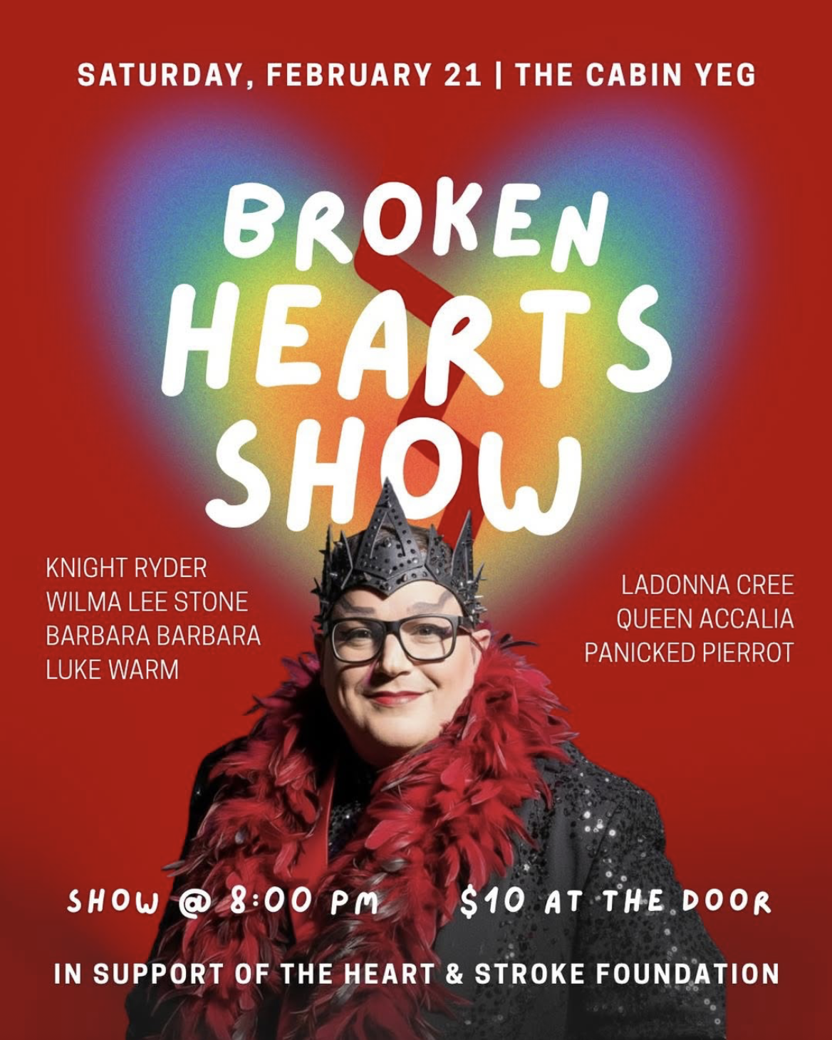 Welcome to the Broken Hearts Club Drag Show Feb 21st, a night of pure drama and high-energy drag all in support of The Heart and Stroke Foundation. We will be...